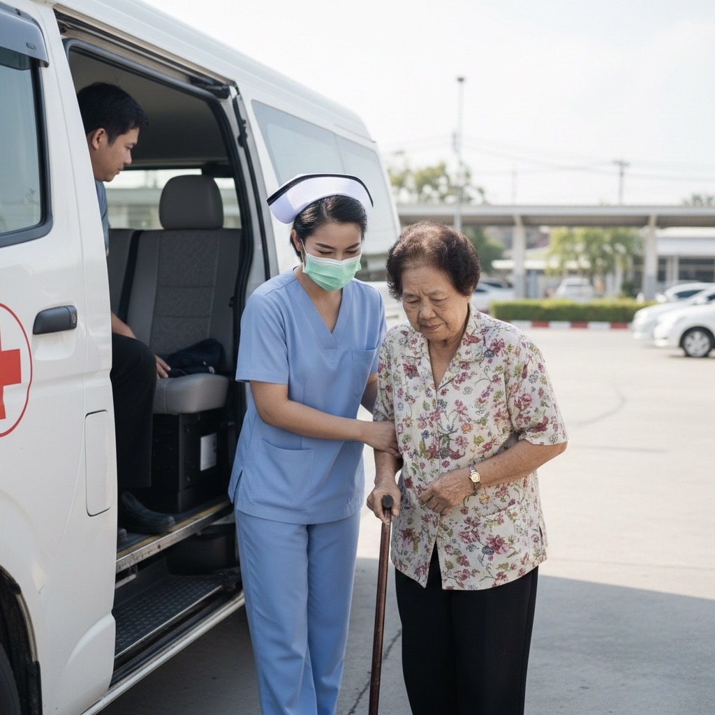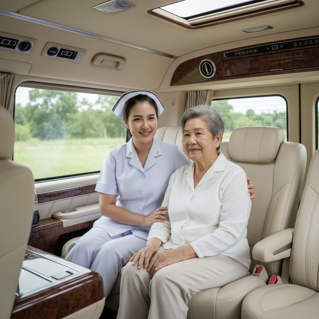 บริการดูแลผู้ป่วยและผู้สูงอายุระหว่างการเดินทาง โดยพยาบาลวิชาชีพที่สามารถสื่อสารภาษาอังกฤษได้ เหมาะสำหรับผู้ป่วยชาวต่างชาติหรือผู้ที่ต้องการการสื่อสารเป็นภาษาอังกฤษโดยเฉพาะ